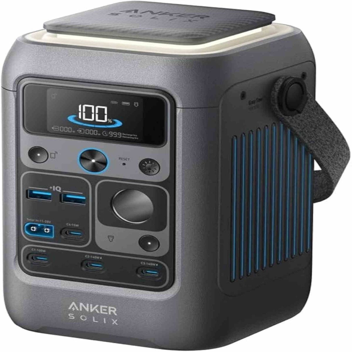 ANKER SOLIX C300X DC Powerstation in Frontansicht mit Display, DC- und USB-Anschlüssen für mobile Stromversorgung