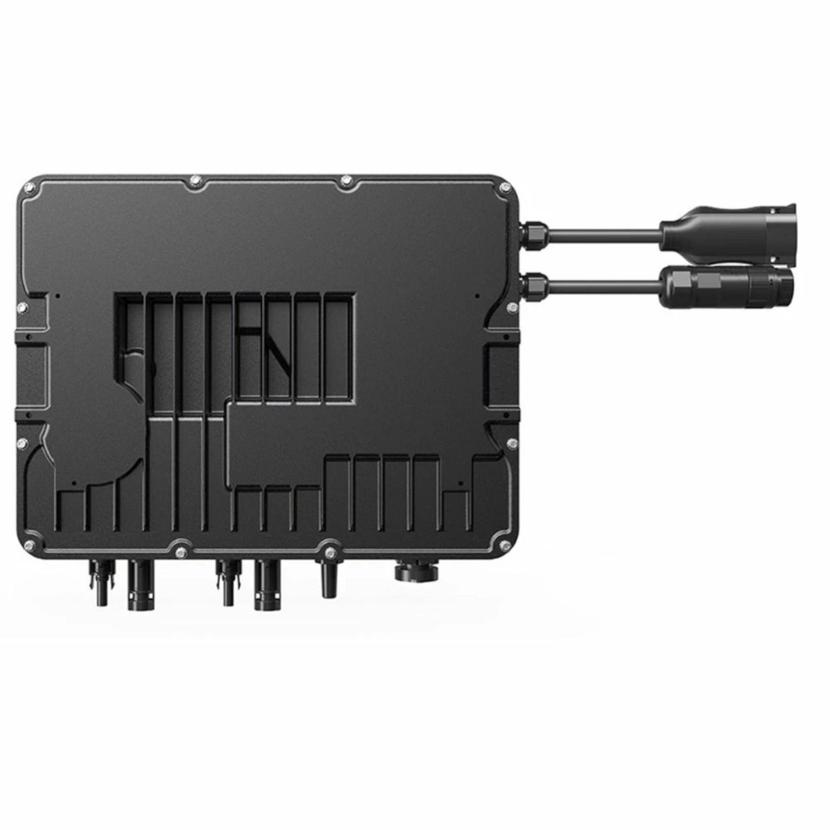 Der Wechselrichter verfügt über zwei unabhängige MPPT-Eingänge (je bis zu 600 W DC) für flexible PV-Modulanbindung. Ein integriertes BMS schützt den Speicher vor Überladung, Tiefentladung, Überhitzung und sorgt für Zellenausgleich.