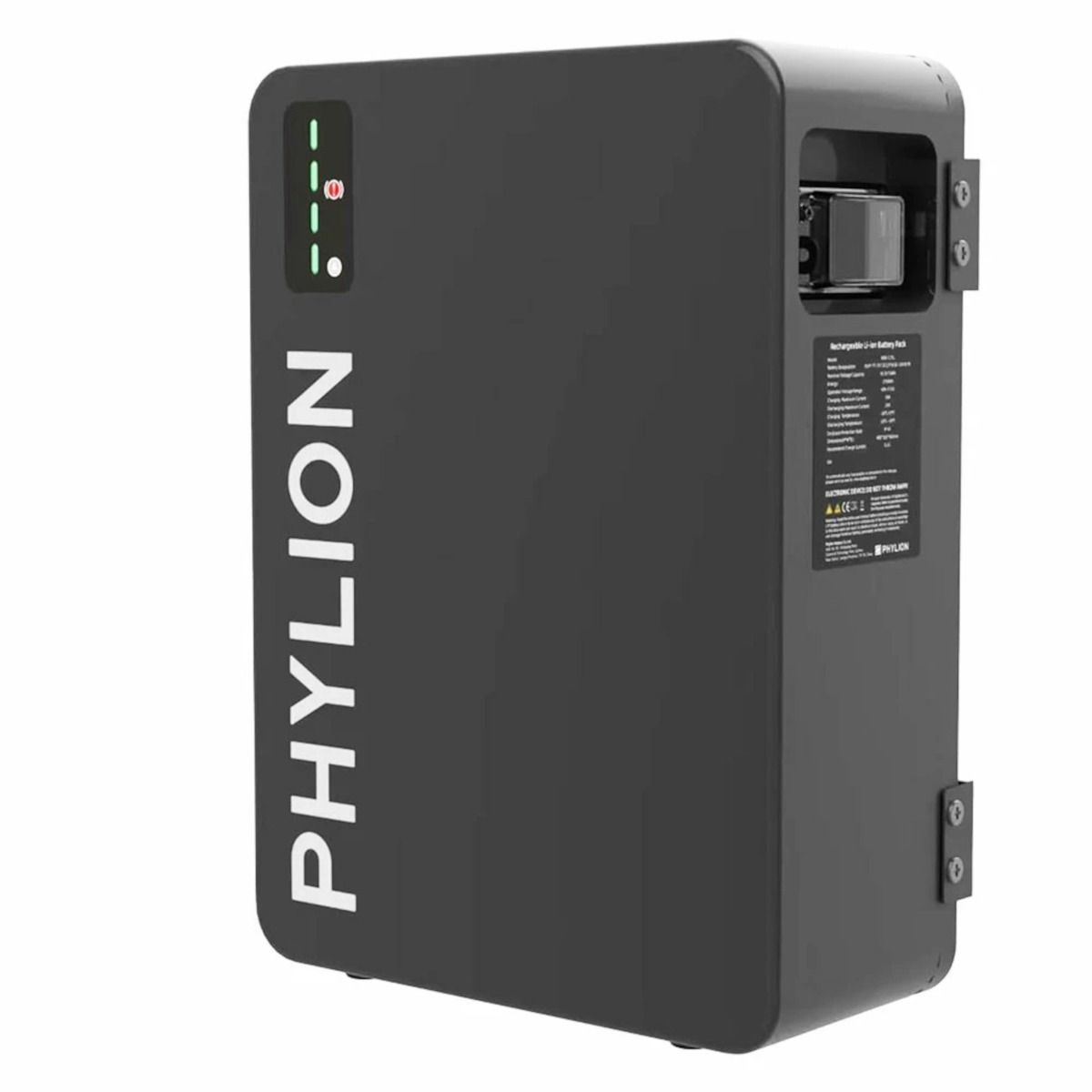 Der Phylion-Speicher (Modell BDB‑2.76L) bietet 2,76 kWh Kapazität bei nominal 51,2 V, 54 Ah, mit über 6000 Zyklen bei 0,5C und 80 % DoD.