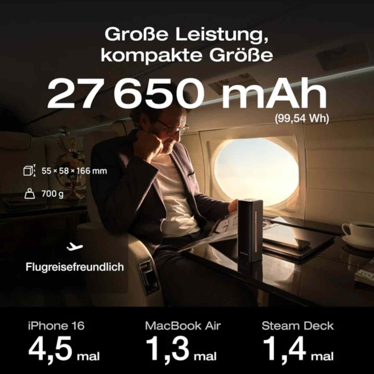 • Flugreisenfreundlich unter 100 Wh: ideal für Mobilität unterwegs.