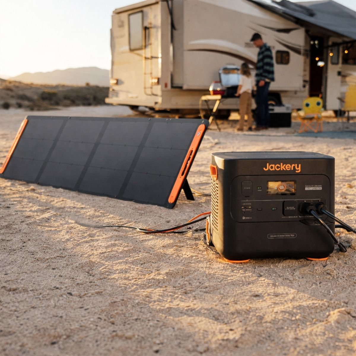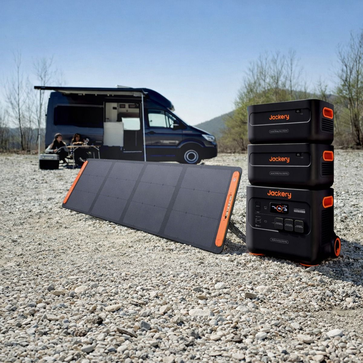 - Kompatible Solarpanels: Jackery SolarSaga 80 W / 100 W / 200 W (bis zu 6× 200 W gleichzeitig)