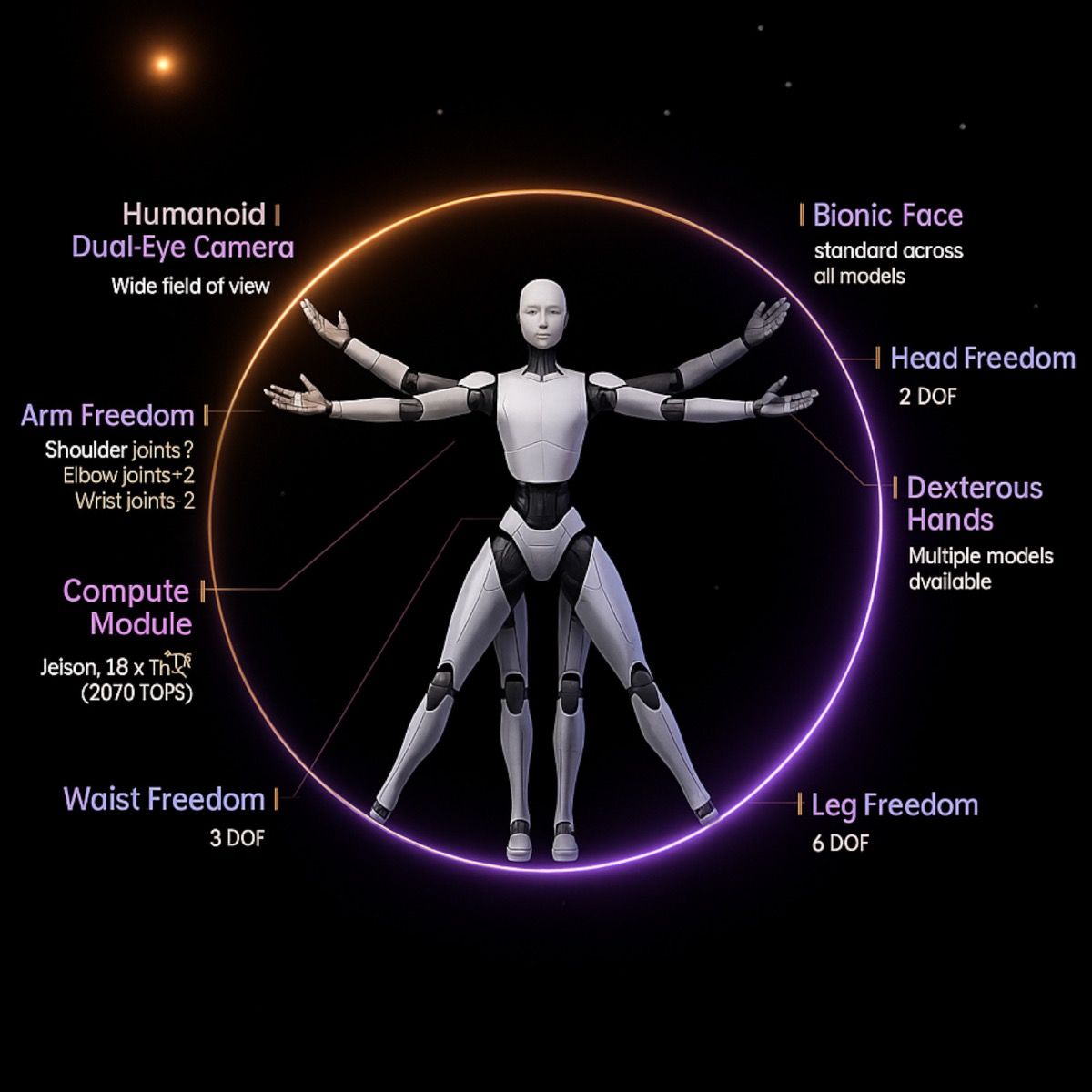 - Humanoider, menschgroßer Formfaktor (≈ 182 cm Höhe, 456 mm Breite, 218 mm Tiefe)